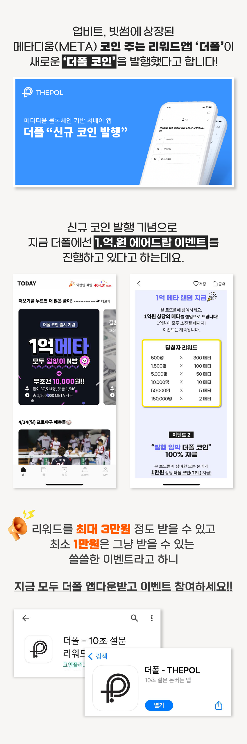 * 메타 리워드는 즉시 지급이나, 더폴코인은 이벤트 종료 후 일괄지급